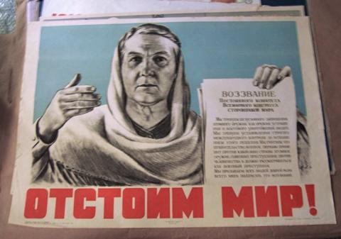 Cette affiche reprend la déclaration que Staline avait faite lors du 6ème Congrès du Parti Communiste en juillet 1928. Il avait souligné les contradictions du système capitaliste et les menaces qu’il représentait pour la paix. L’affiche distingue lutte des classes et guerre impérialiste. Dans ces conditions, la Paix ne peut être totale, absolue, qu’au terme de la lutte des classes et la paix impérialiste n’est qu’une paix relative. La conséquence est qu’il est nécessaire de s’armer. Lutter pour la paix revient à renforcer sa sécurité.