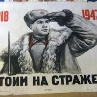 - Caricature d'un soldat soviétique, regardant au loin pour visualiser l'ennemi, mais également regarder vers l'avenir.