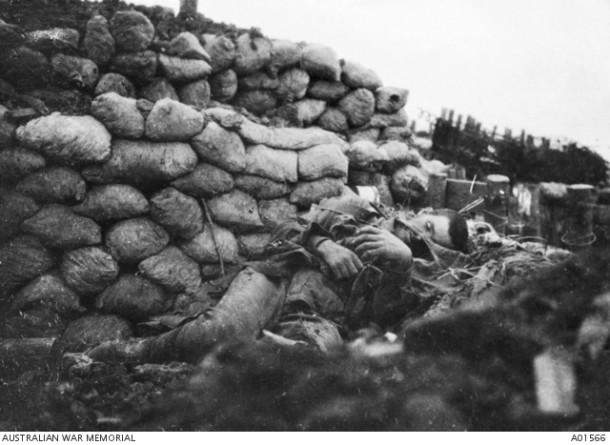 Soldats australiens dans une tranchée à Fromelles