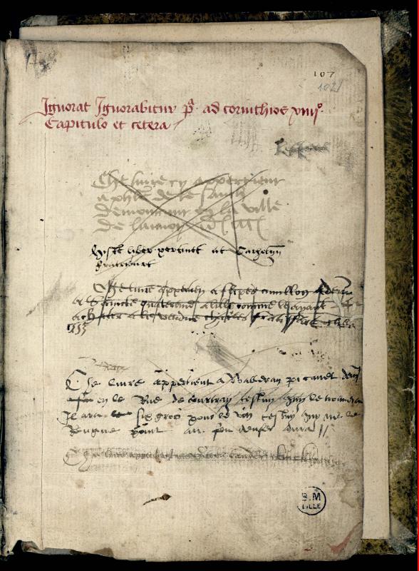 “Ce présent livre appertient à Jacques Mas demourant à Lille, cestuy quy le trouvera, il aura le vin quant saille deviendra persyn, une pumme et une poire et ung gigot pour aller boire”.