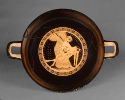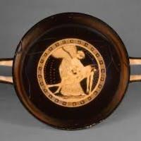Coupe attique à figures rouges : Éos et Memnon tombé au combat