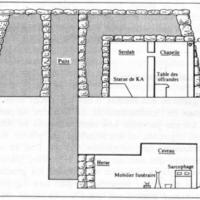 schéma de la coup d'un mastaba type permettant de comprendre la disposition d'une tombe égyptienne et les modes d'exposition d'écriture.