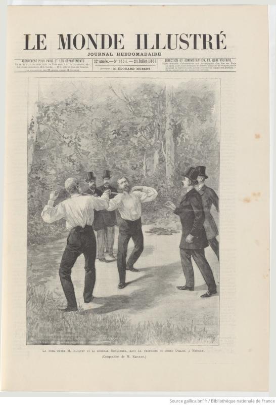 il annonce à ses adversaire que ceci est le dernier tour qu’il leur fera, évoquant la défaite de Waterloo. Ici Napooléon apparaît comme un jouet entre les mains de l’Angleterre (Wellington à droite) et de la Prusse (Blücher à gauche)