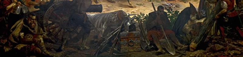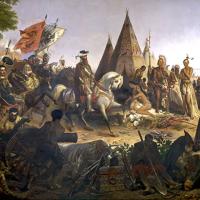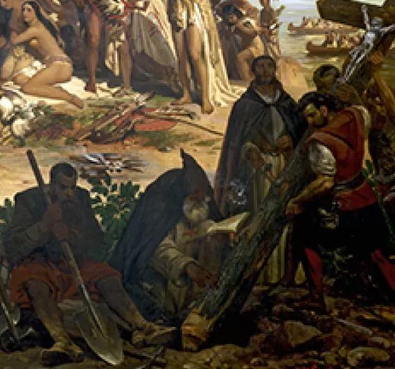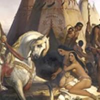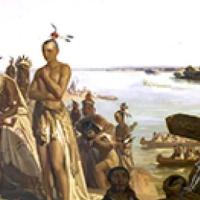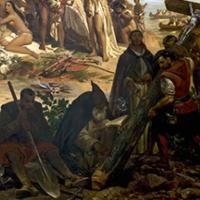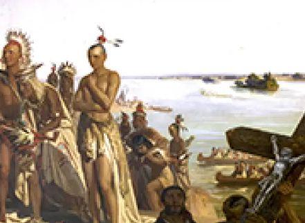 - Une des quatre scènes des premières explorations exposées à la Rotonde du Capitole. La découverte du Mississipi par De Soto.