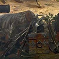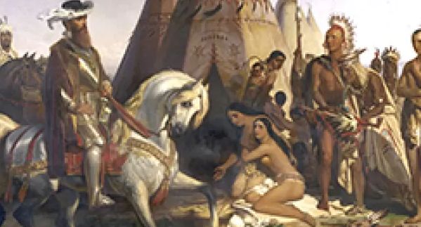 - La toile de William Henry Powell montre le conquistador et explorateur espagnol Hernando De Soto (1500-1542), chevauchant un cheval blanc et vêtu de parures de la Renaissance, arrivant au fleuve Mississippi à un point situé en aval de Natchez le 8 mai 1541. De Soto fut le premier Européen documenté à avoir vu le fleuve.