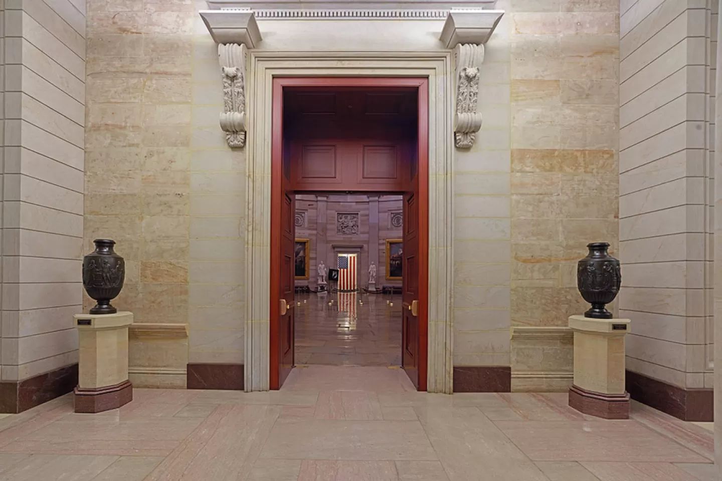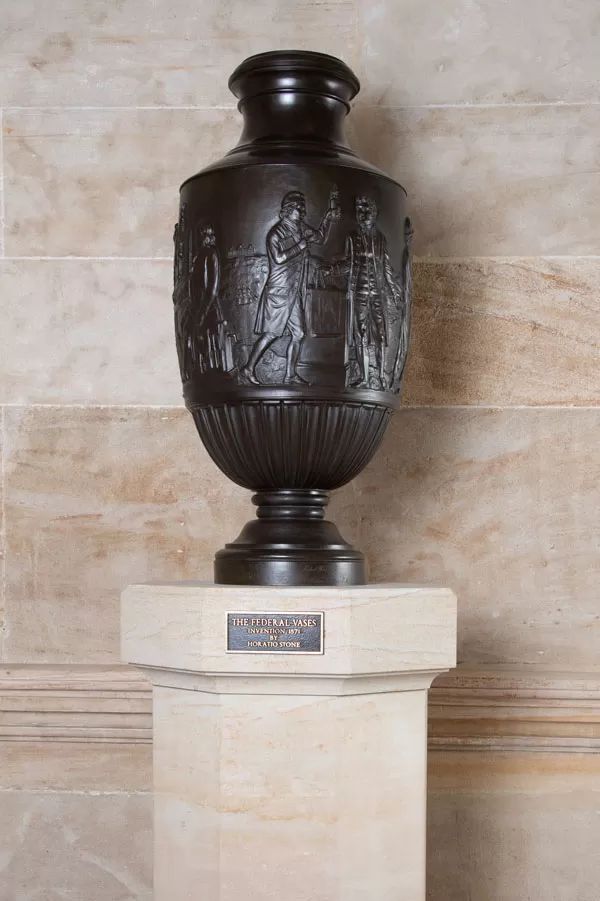 - Une paire de vases en bronze, que l'artiste Horatio Stone a intitulée « Ecce Homo » et « Freedom » (Liberté), connus sous les noms « Philosophy » (Philosophie) et « Invention », ou plus simplement Vases fédéraux.