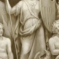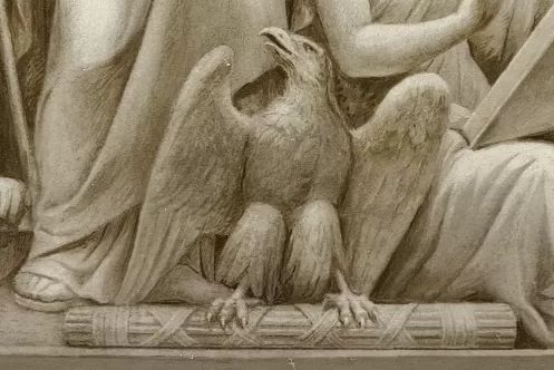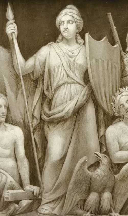 - Partie de la frise de la rotonde du Capitole. Ce panneau contient les seules figures allégoriques de la frise de Constantino Brumidi.