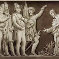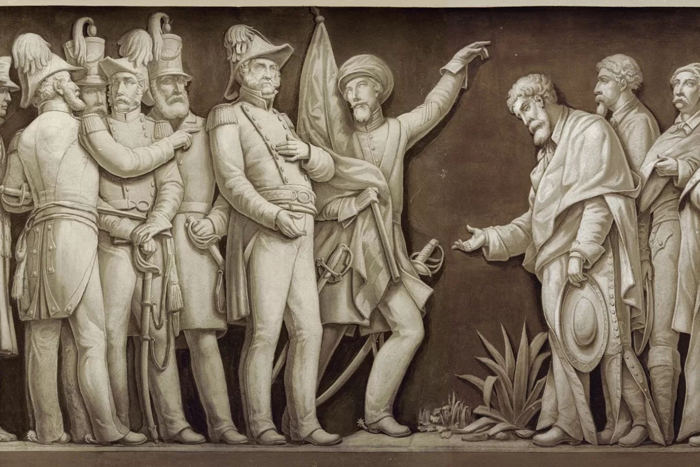 - Partie de la frise de la rotonde du Capitole représentant la fin de la guerre mexicano-américaine (1846 - 1848) fixant la frontière au Rio Grande et reconnaissant l’indépendance du Texas.