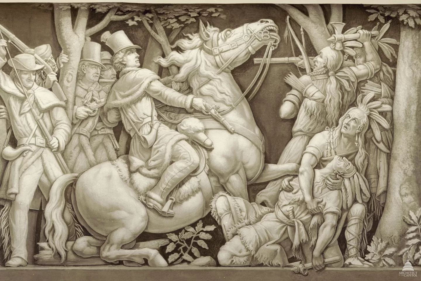 - Partie de la frise de la rotonde du Capitole illustrant un moment pivot dans l'opposition indienne aux colons.