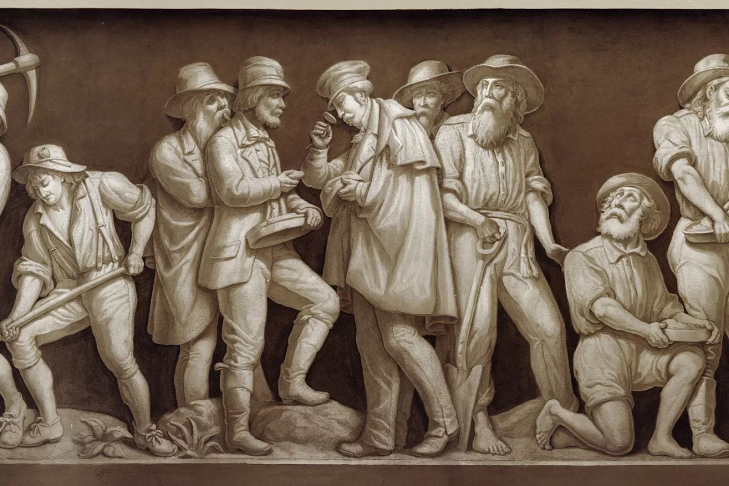 - Partie de la frise de la rotonde du Capitole illustrant l'origine de la ruée vers l'or en 1849.