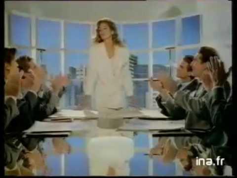 - Dans cette publicité de l’Oréal, Cindy Crawford incarne une femme active, ou une Girl Boss. Dans les années 90, les femmes partent à la conquête du monde du travail. Leur présence est tolérée, si elles continuent de prendre soin de leur apparence et restent sexuellement disponibles.