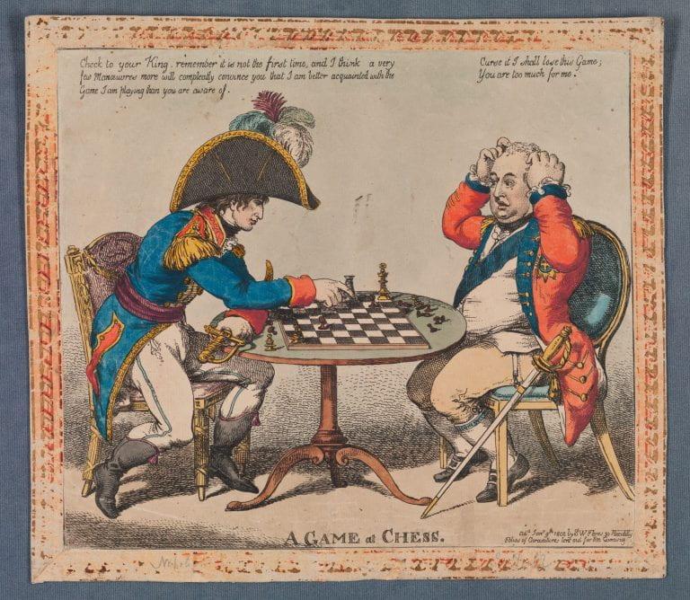 caricature politique anglaise contre Fox (à droite) et Bonaparte (à gauche)