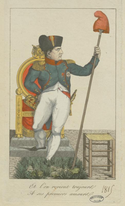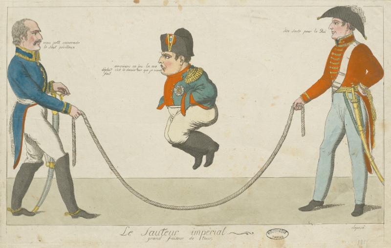 caricature française où le retour au pouvoir de Napoléon est représenté comme un mauvais tour, voué à l’échec