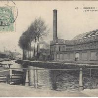 Photographie présente sur une carte postale présentant le quai du Sartel. Cette image illustre la place des usines dans la ville surnommée le "Manchester français"