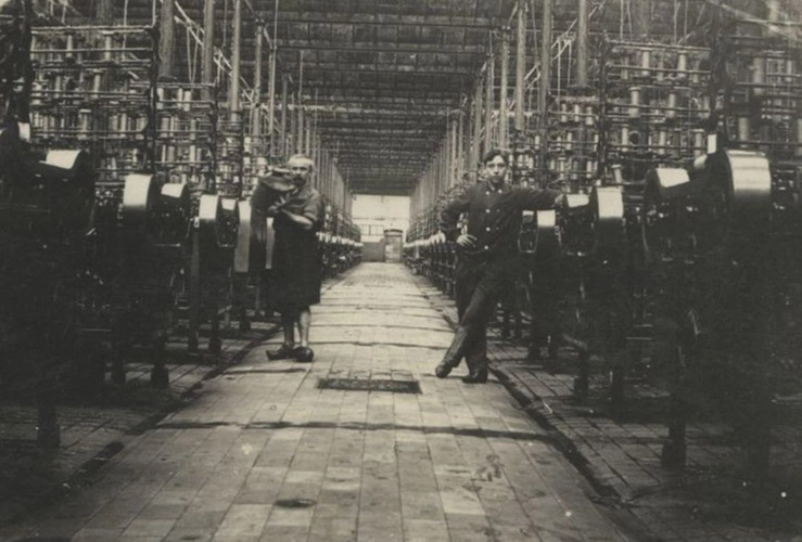 Image issue des archives municipales, elle nous montre deux ouvriers de l'usine Motte-Bossut en train de travailler. Cette usine est très souvent photographiée et représentée sur les cartes postales, étant un emblème pour la population roubaisienne ; mais que serait cette usine sans ses ouvriers ?